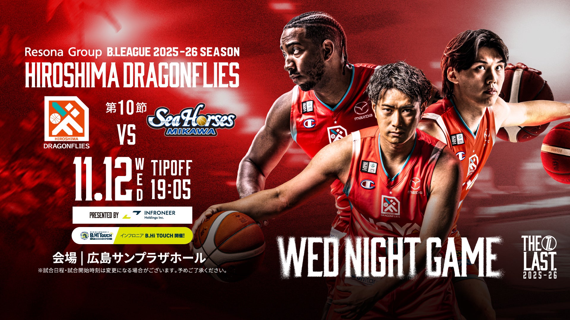 11/12(水)三河戦(19:05 TIPOFF/広島サンプラザホール)