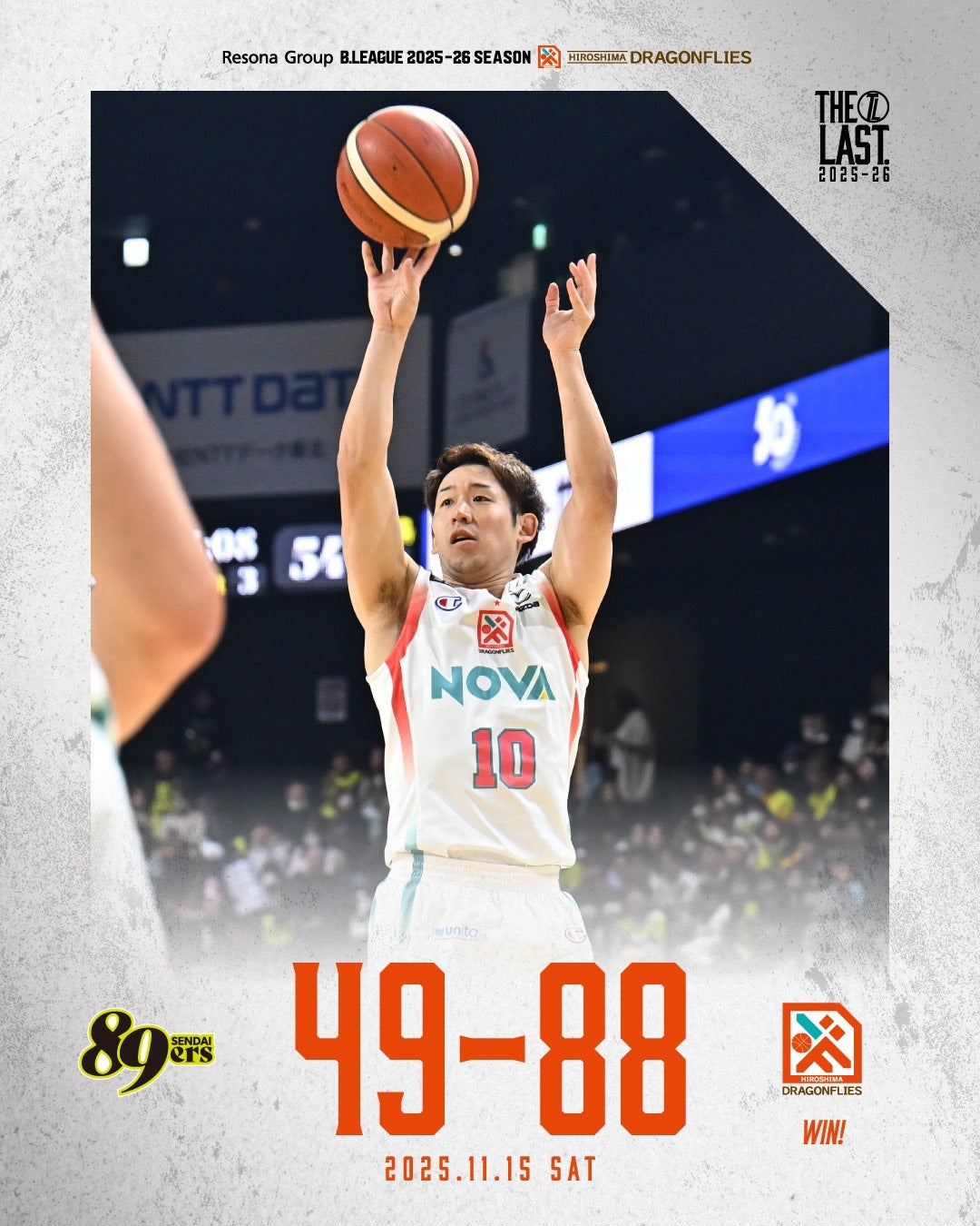 【試合結果】11/15(土) りそなグループ B.LEAGUE 2025-26シーズン 第11節 仙台89ERS 戦 GAME1