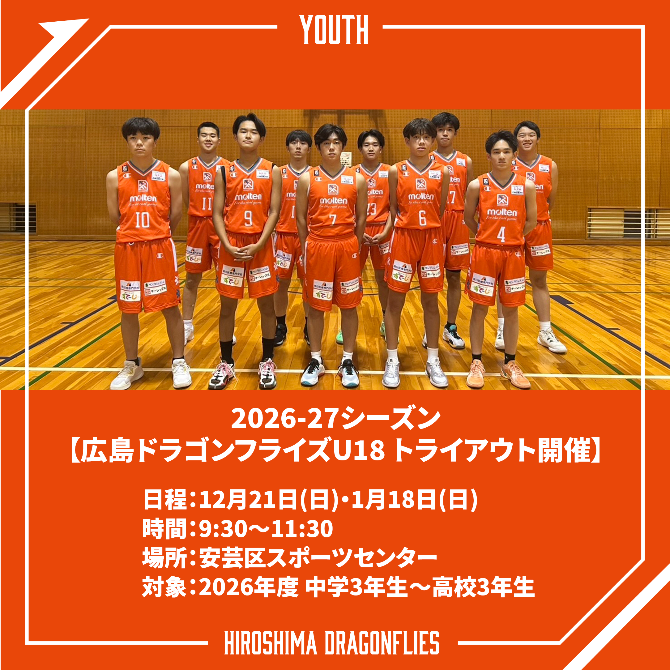 情熱と可能性に満ちたあなたを、広島ドラゴンフライズU18でお待ちしています!