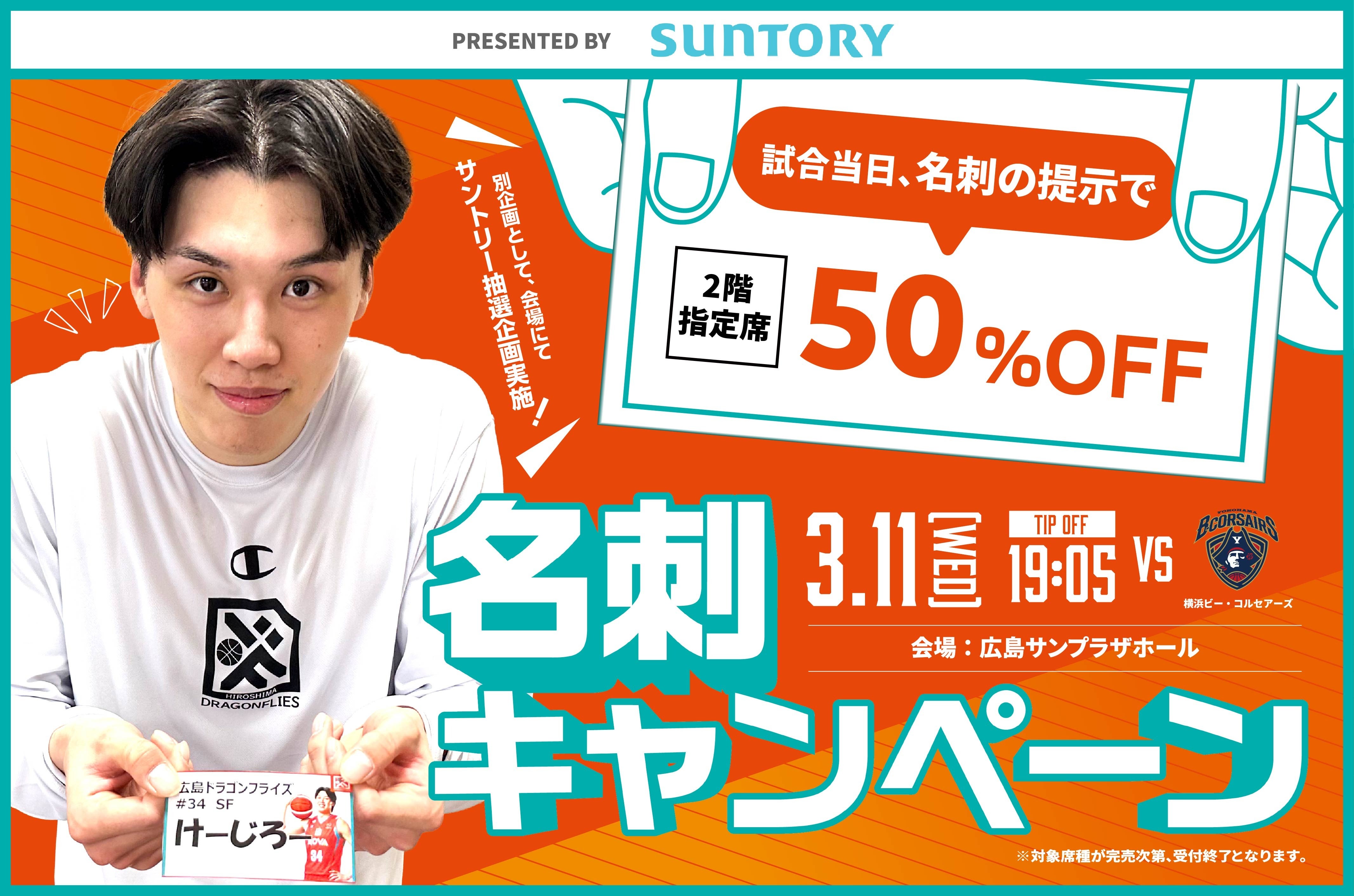 SUNTORY PRESENTS 名刺キャンペーン実施! -3/11(水)横浜ビー・コルセアーズ戦-