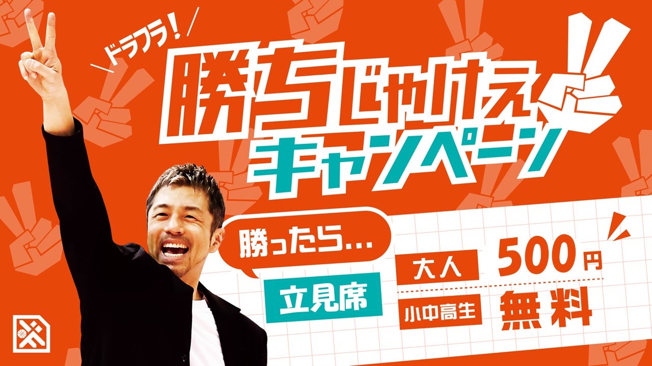 ホームゲームの試合に勝ったら、以降の試合のチケットが 大人1,000円 ・ 高校生以下無料 !!✨