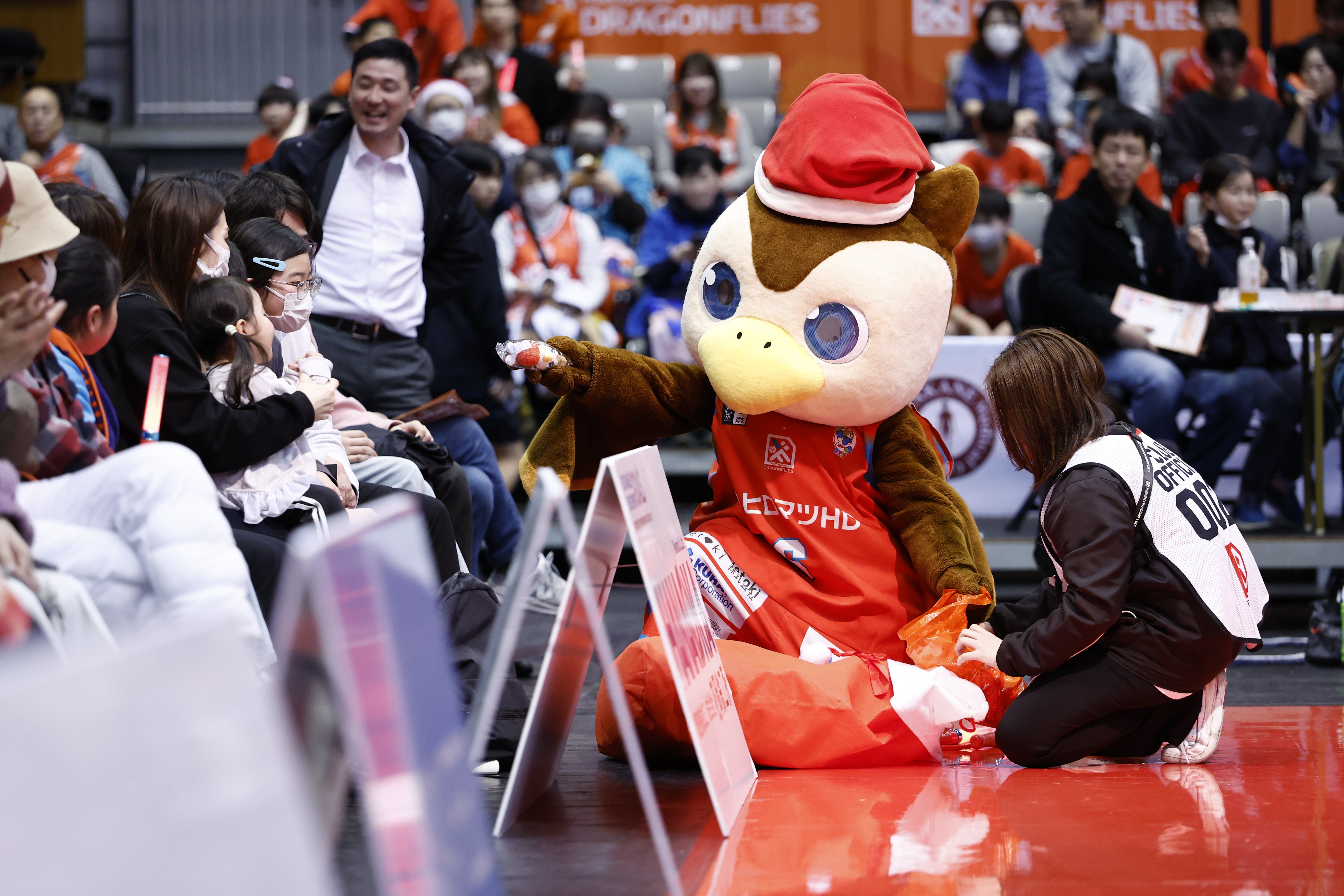 第4Qオフィシャルタイムアウトでは、「Abby's Challenge」を実施いたしました。今節のチャレンジは"モヒカンアビィ vs. D*Flare 綱引き対決"を実施しました。アビィのチャレンジが成功か失敗かを選んでご応募いただいた方の中から、抽選で1名様に"モヒカンアビィぬいぐるみ"がプレゼントされました。