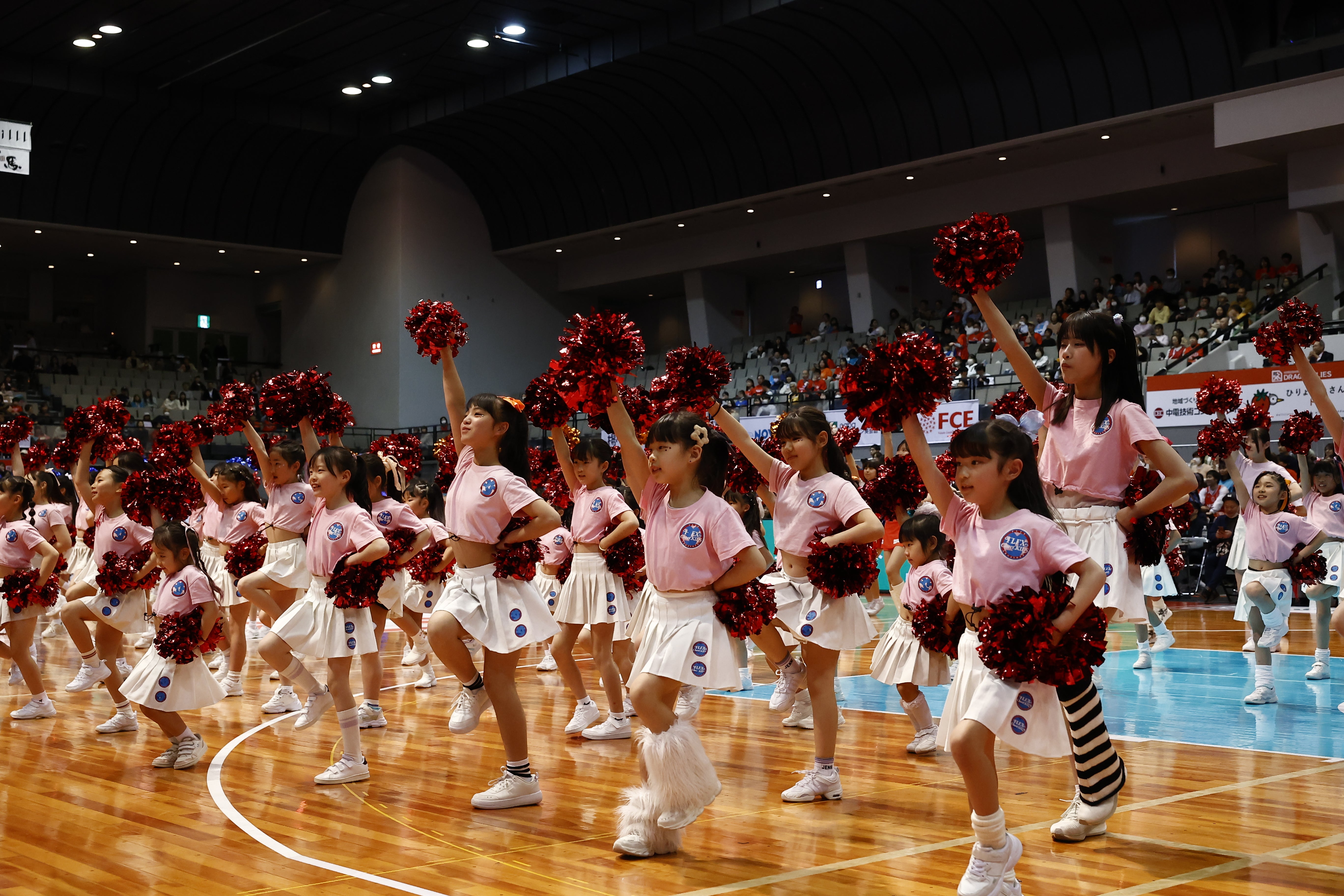 ハーフタイムでは、「FLEXチア」のダンスパフォーマンスを実施いたしました。総勢180名以上のチアの皆さんが大迫力のパフォーマンスで会場を盛り上げてくれました。