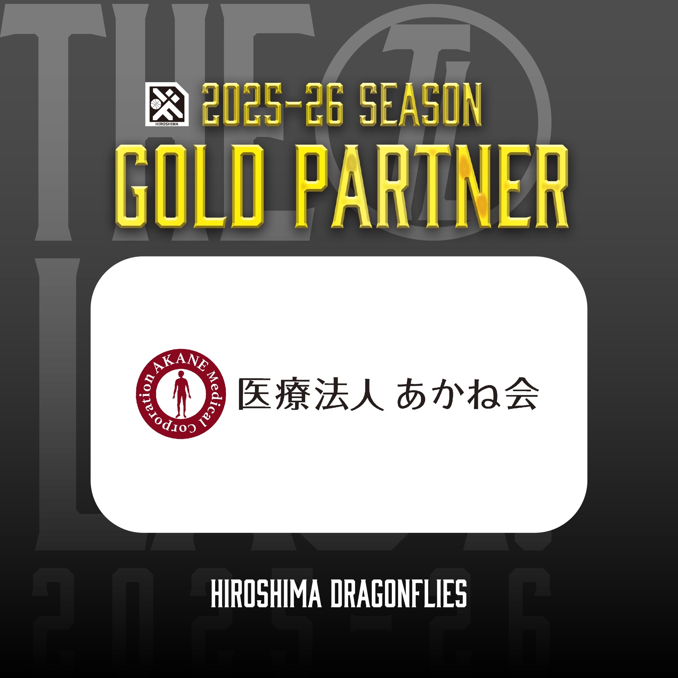 広島ドラゴンフライズのりそなグループ B.LEAGUE 2025-26シーズンのゴールドパートナーとして「医療法人あかね会」様が決定いたしましたので、お知らせいたします。