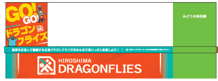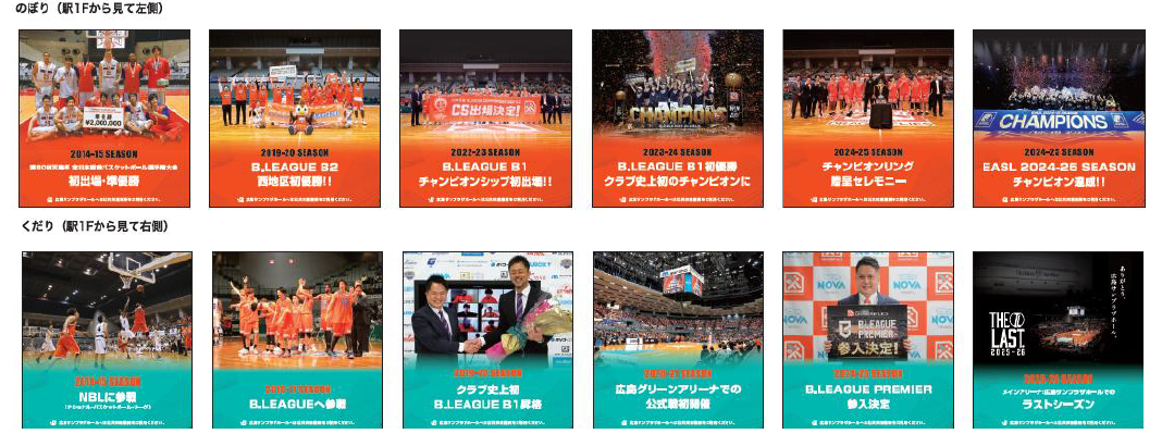 今シーズンでは、広島サンプラザホールをメインアリーナとする最後のシーズンということで、新井口駅に広島ドラゴンフライズの歴史を振り返る装飾を実施していただきます。また、券売機・改札機などを広島ドラゴンフライズカラーのラッピング装飾を実施していただきます。
