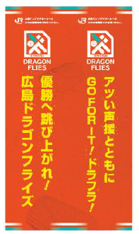 広島ドラゴンフライズ選手・広島ドラゴンフライズ専属パフォーマンスチーム「D*Flare」・広島ドラゴンフライズ公式アンバサダー・広島テレビアナウンサー・JR西日本社員のみなさんが一体となり、躍動感あふれるデザインで盛り上げます。
