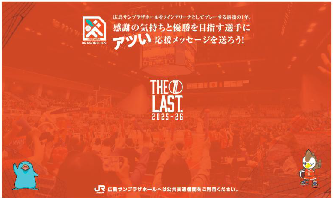 広島ドラゴンフライズでは、西日本旅客鉄道株式会社中国統括本部広島支社(以下「JR西日本」)と連携し、2025- 26シーズン応援企画として、ホーム開幕に合わせ、以下の取り組みを実施いただきます。