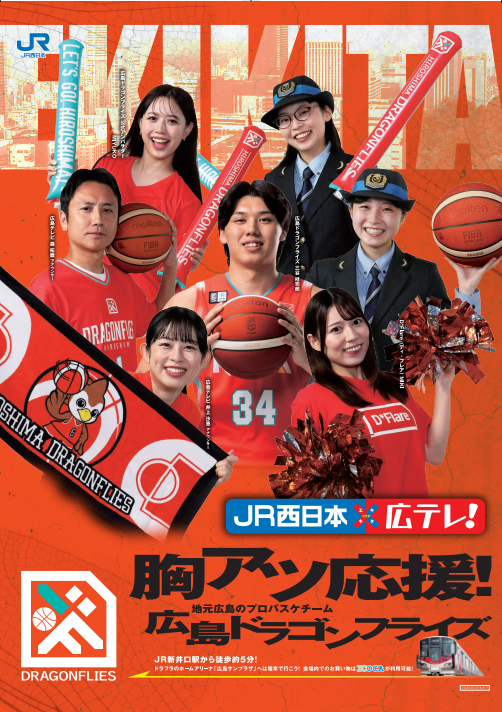 広島ドラゴンフライズを応援するプロジェクトの一環として、広島テレビ放送株式会社(以下「広島テレビ」)とタッグを組み、広島県民の皆さんに広島ドラゴンフライズのアリーナ観戦を促すポスターを作成していただきました。
