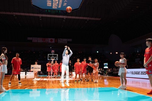 フリースローセレモニーは、株式会社マリモホールディングス 代表取締役社長 深川真 様に実施いただきました。