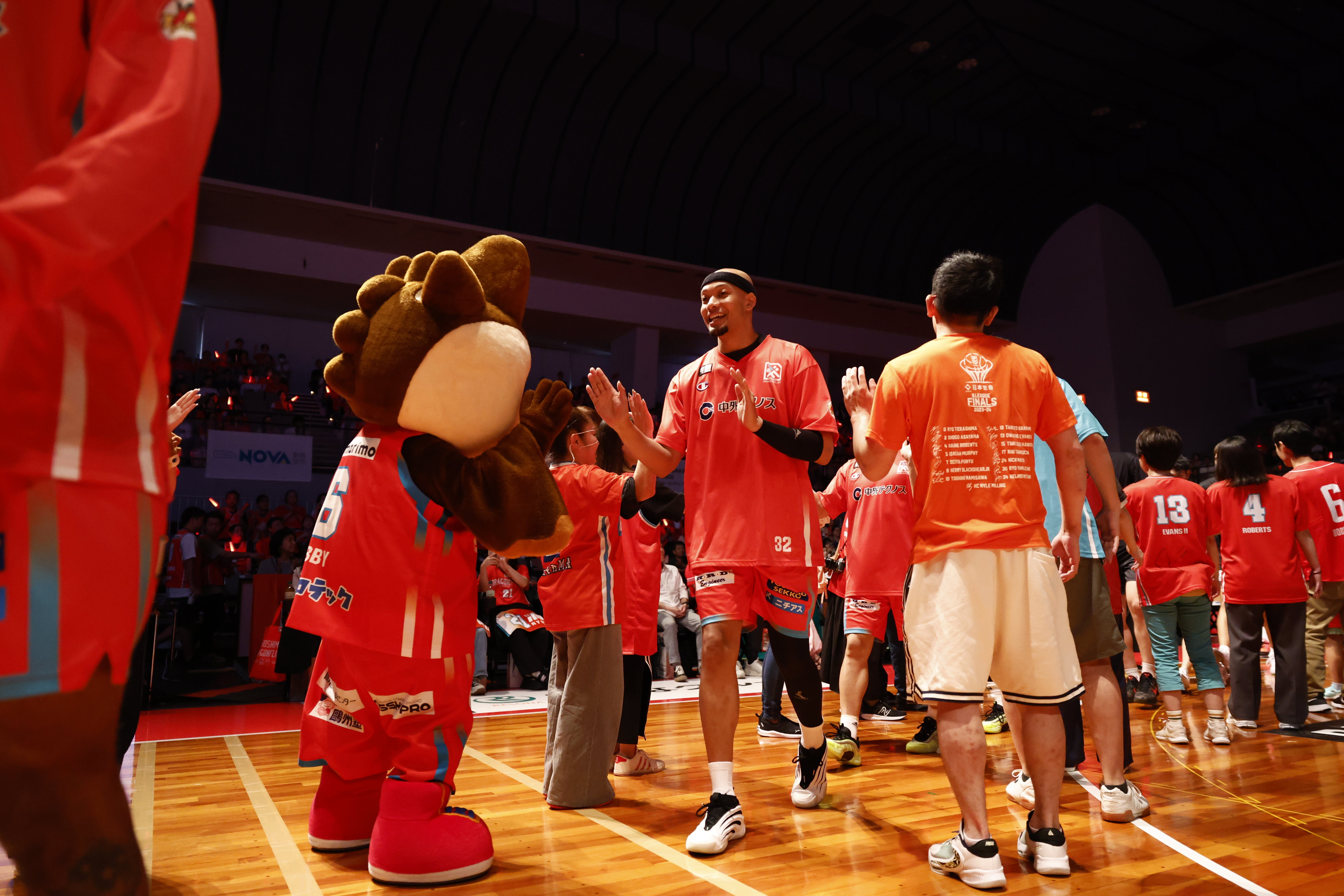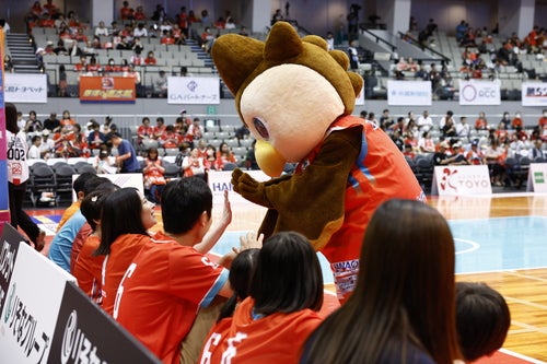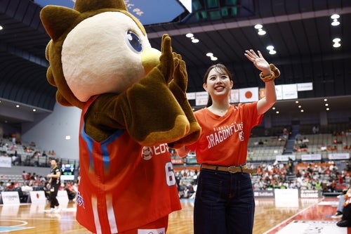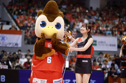 第1Q後の、「未来のくらし 楽しく シンプルに」オールハウス presents カメラルーレットでは、D*Flareのカメラにアピールし、最後に4面ビジョンへ映し出された方に選手サイン入りミニバスケットボールがプレゼントされました。