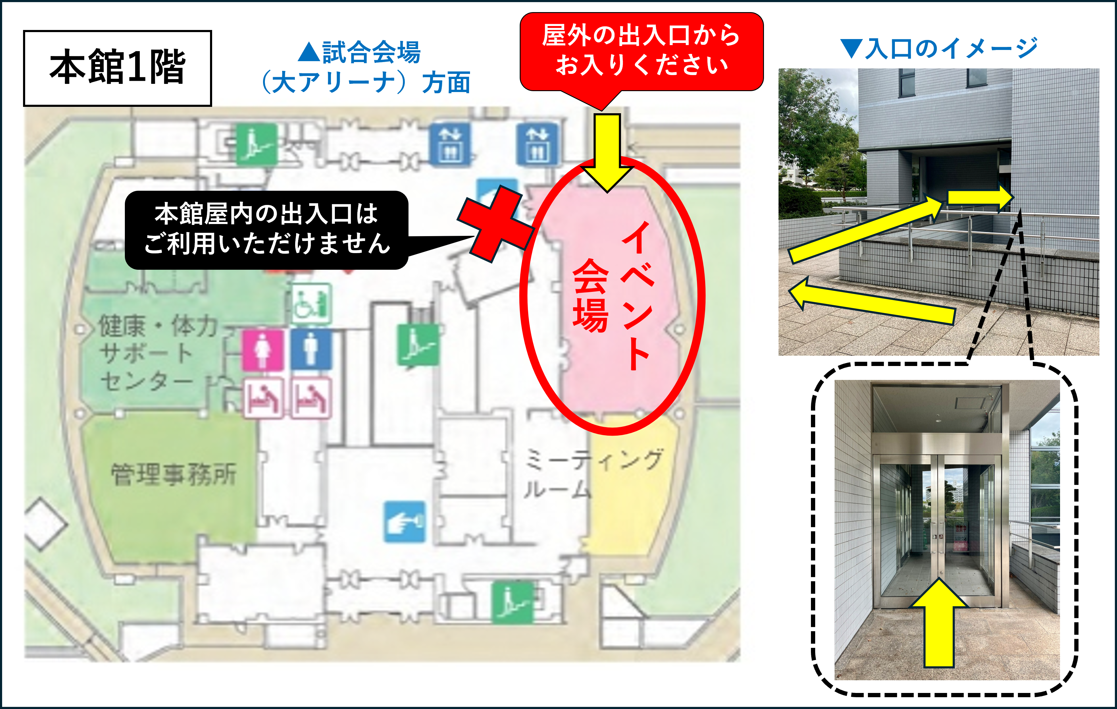 ※イベント会場へは、屋外の出入口からお入りください。(本館屋内の出入口はご利用いただけません。)