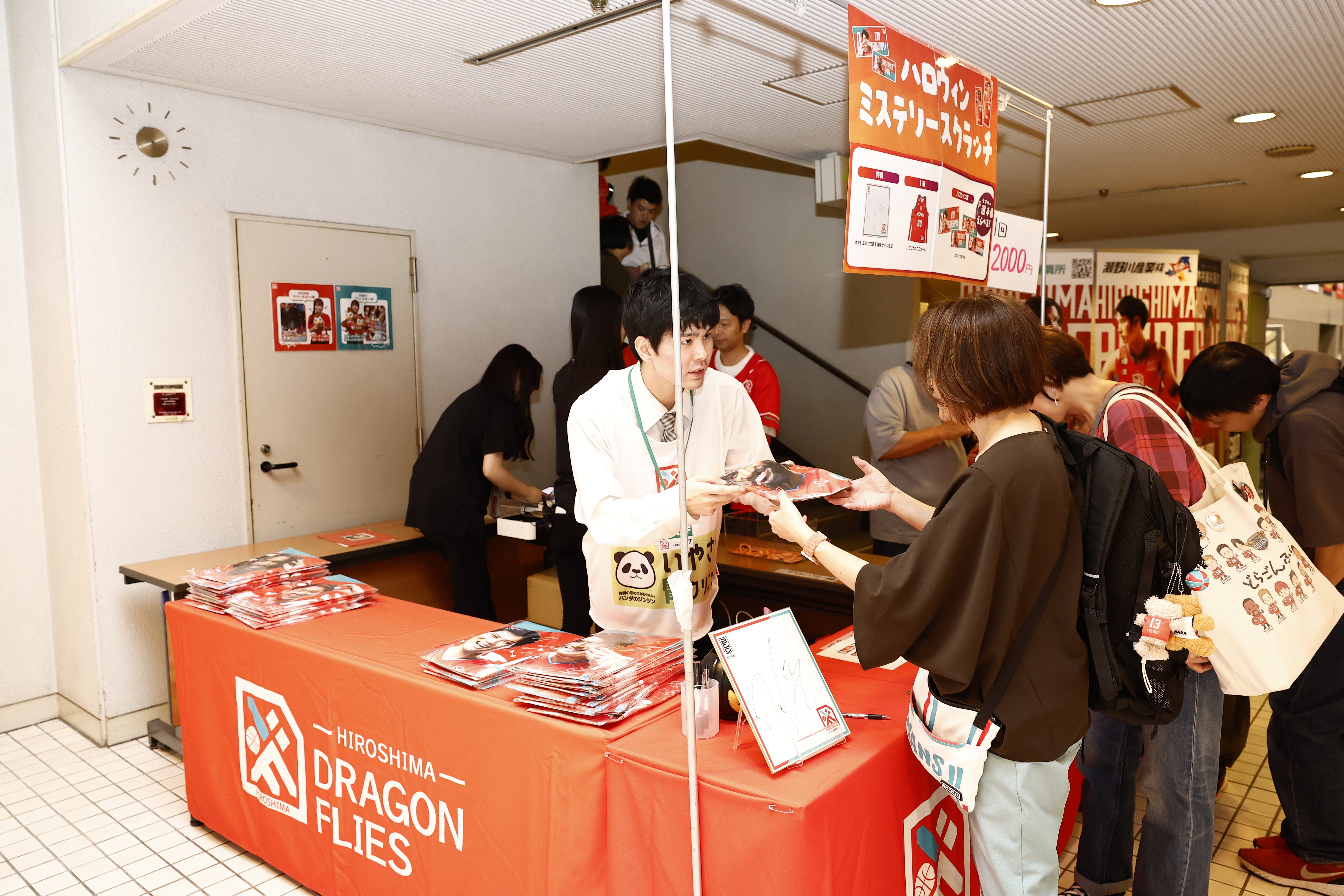 JAバンク広島特設ブース では、JAバンク広島とお取引が分かるものをご提示いただくと、ドラゴンフライズとのコラボ・オリジナルコインケースをプレゼントいたしました。また、JAバンク広島の公式Instagramをフォローすると、「よりぞうグッズ」をプレゼントいたしました。