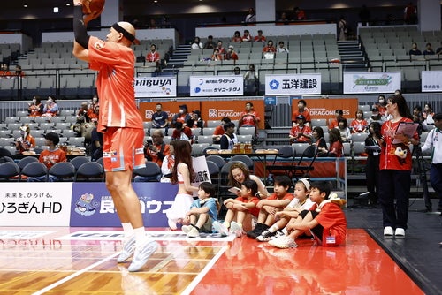 事前抽選に当選された5名の子どもたちが、Dream Practice Tour presented by 福山臨床検査センター に参加し、試合前の選手の練習を間近で見学しました。