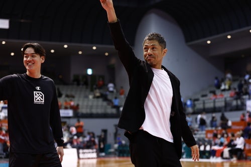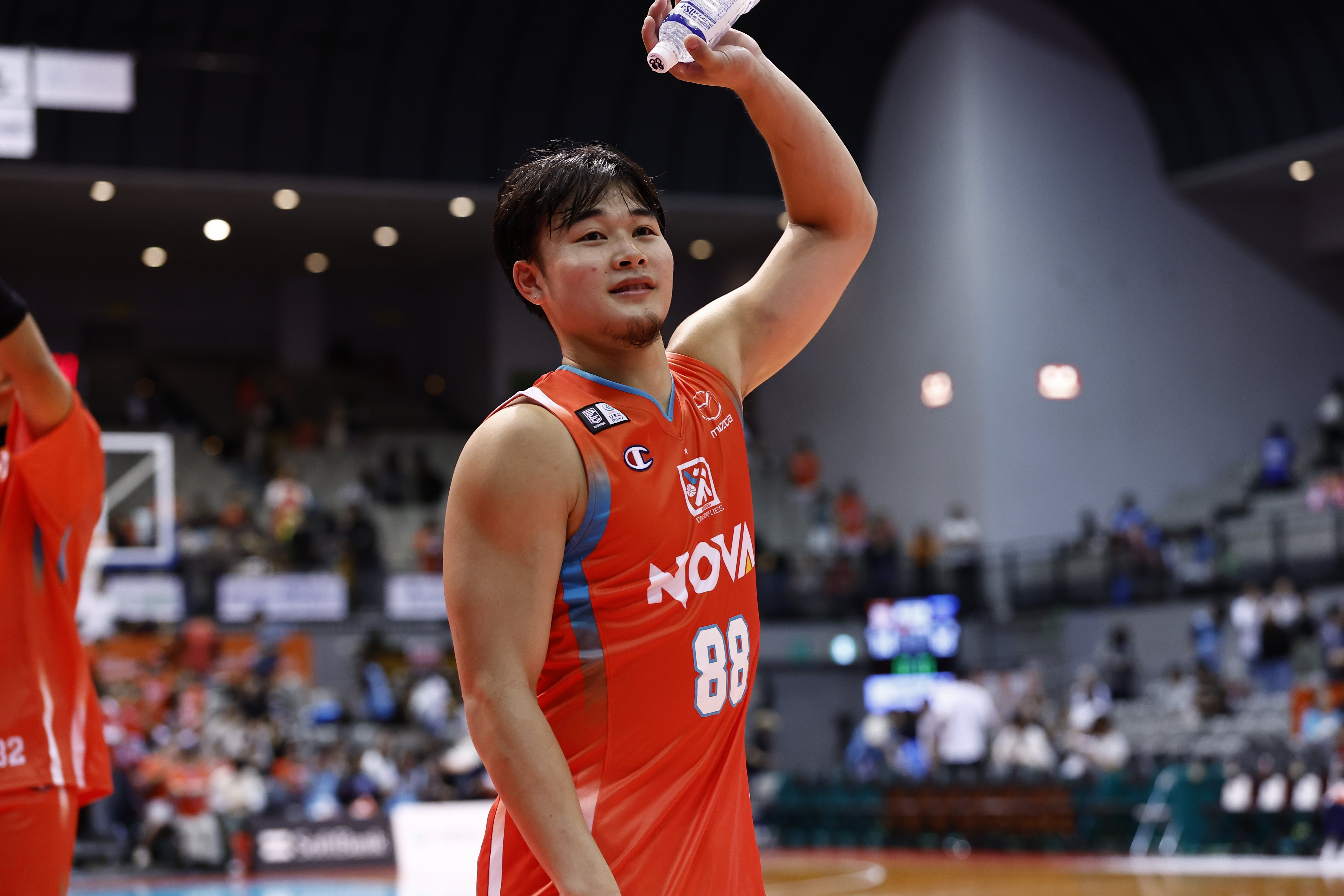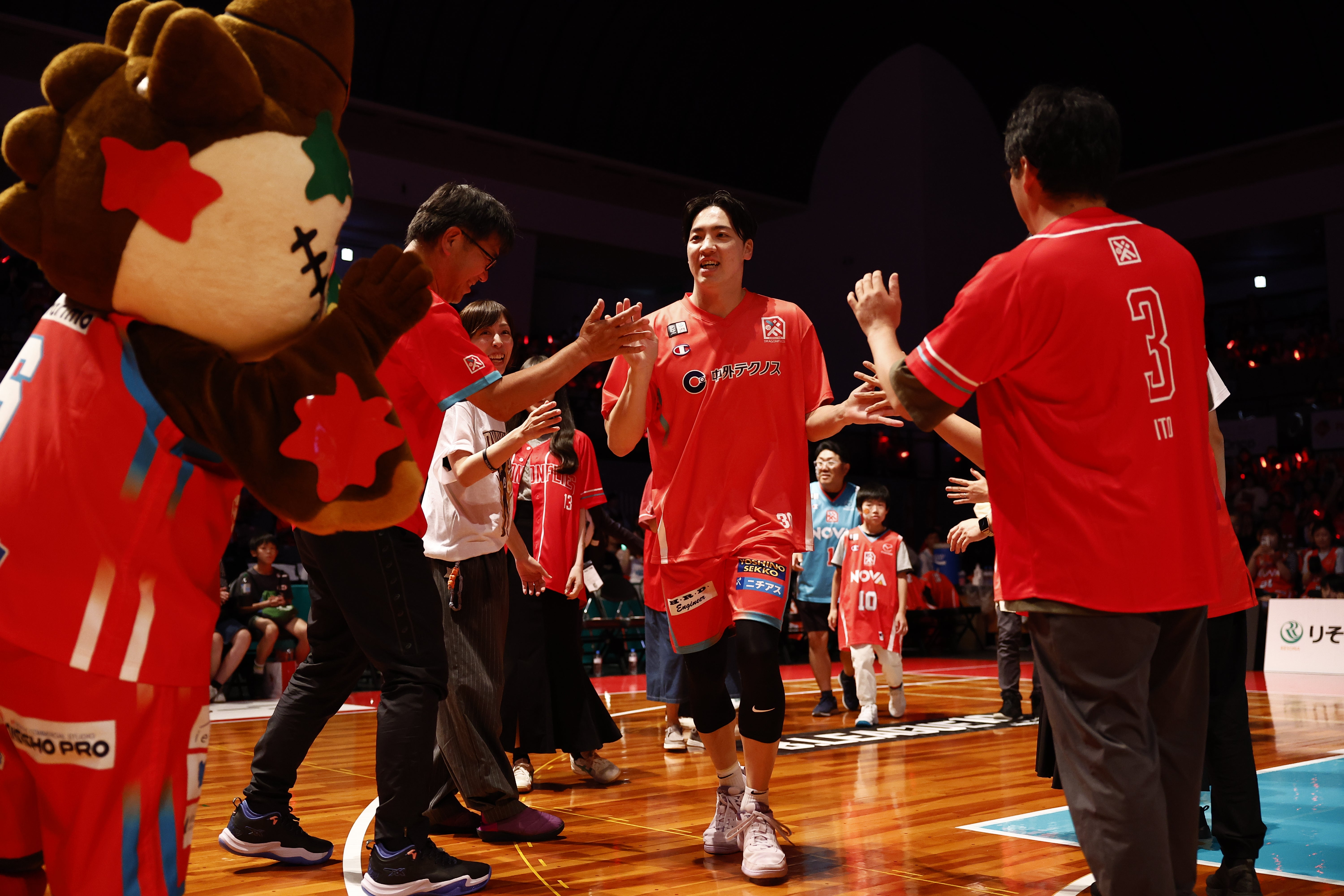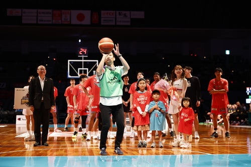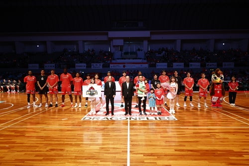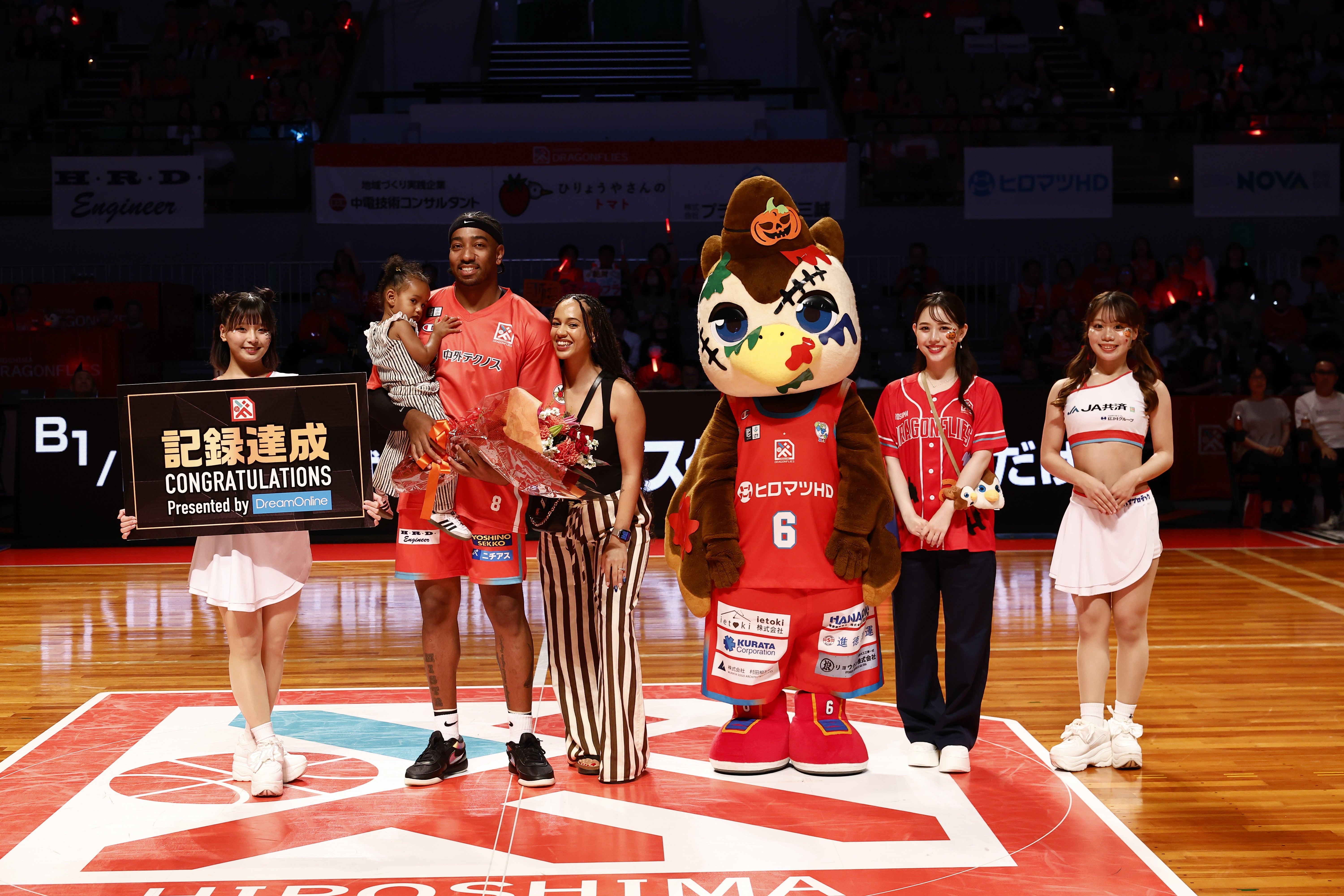 10/15(水)の京都ハンナリーズ戦でクリストファー・スミス選手が"B1個人通算400回3P成功"を達成いたしました。達成を記念して、スミス選手のご家族より花束が贈呈されました。