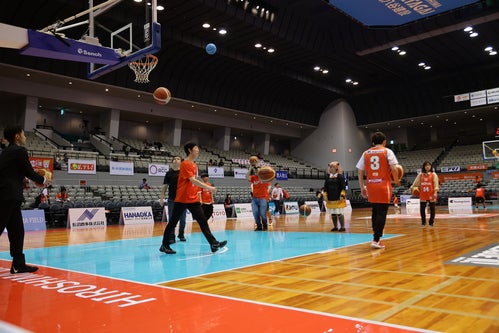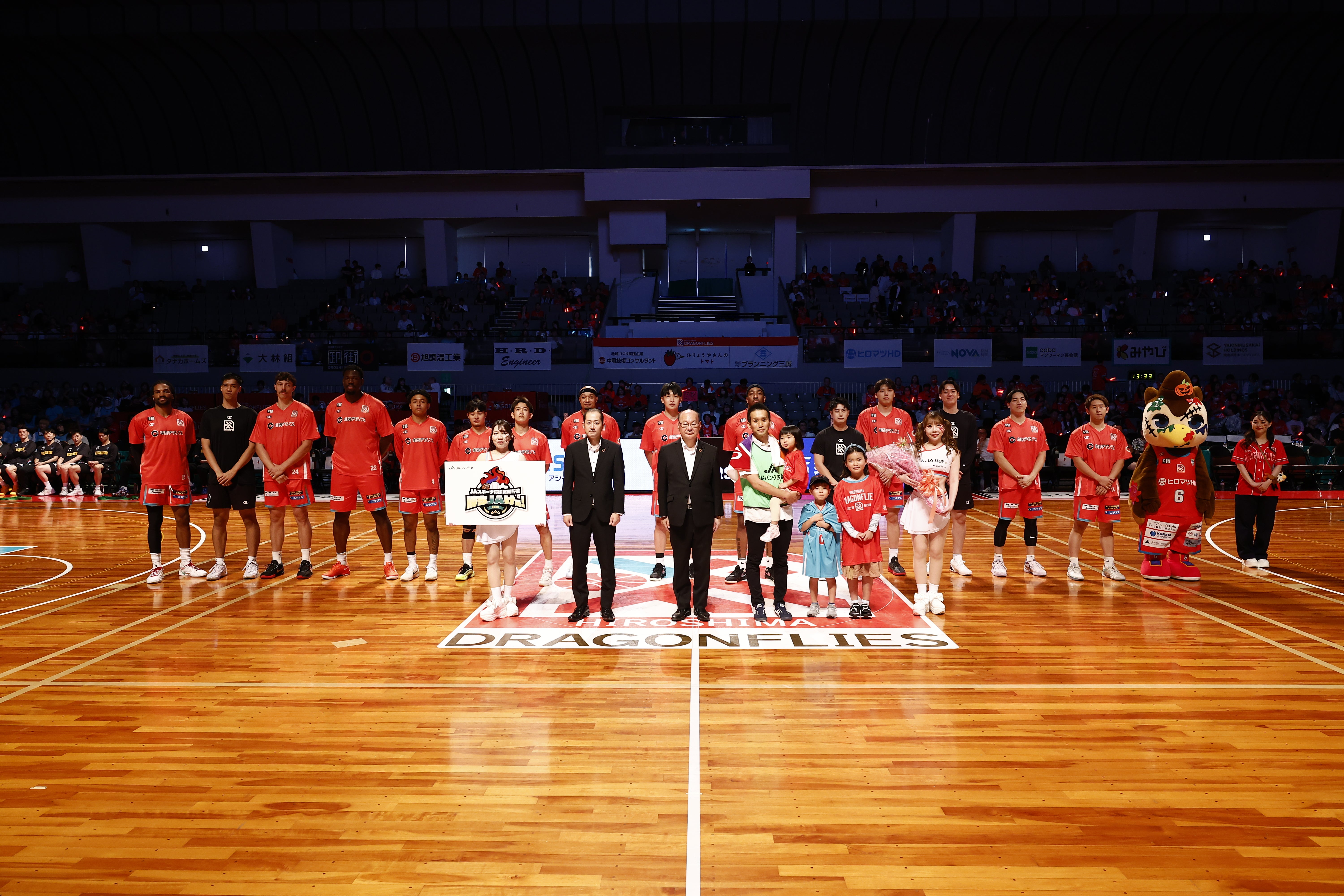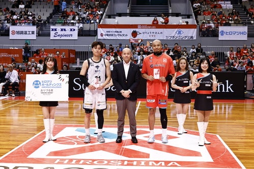 試合開始前には、両チームのキャプテンによるおりづる交換が行われました。試合を通して最もリスペクトに値する選手を表彰する「ヒロマツホールディングス presents おりづる賞」は、広島ドラゴンフライズ 晴山ケビン 選手、佐賀バルーナーズ 井上諒汰 選手が受賞しました。