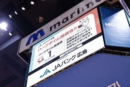 ハーフタイムでは、「JAスポーツ応援定期貯金・勝ちJAけぇ!2025」を新規お預け入れいただいた方にプレゼントが当たるキャンペーンのアナウンスと「勝ちJAけぇ!」の魅力をさらにお伝えするスペシャルCMを放映しました。