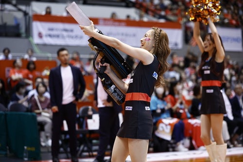第2Qオフィシャルタイムアウトの、「未来のくらし 楽しく シンプルに」オールハウス presents カメラルーレットでは、D*Flareのカメラにアピールし、最後に4面ビジョンへ映し出された方に選手サイン入りミニバスケットボールがプレゼントされました。