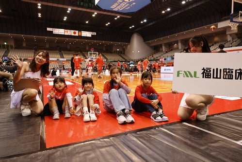 事前抽選に当選された4名の子どもたちが、Dream Practice Tour presented by 福山臨床検査センター に参加し、試合前の選手の練習を間近で見学しました。