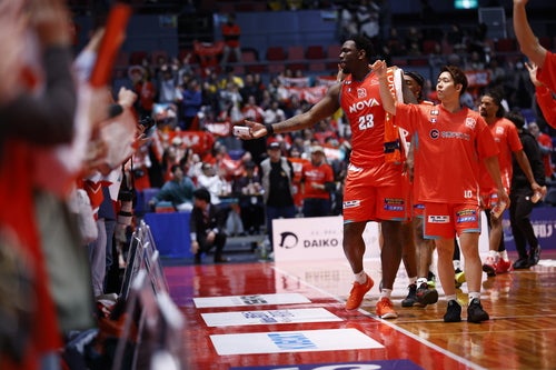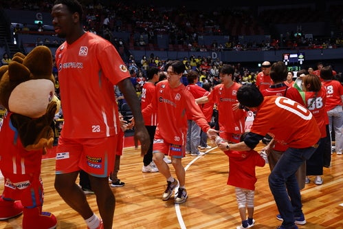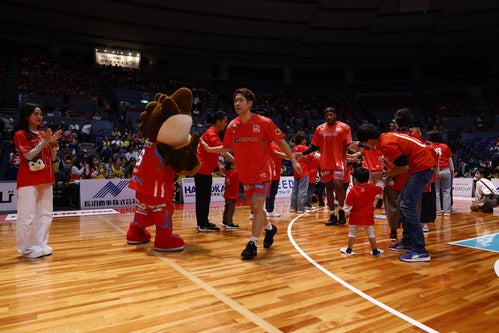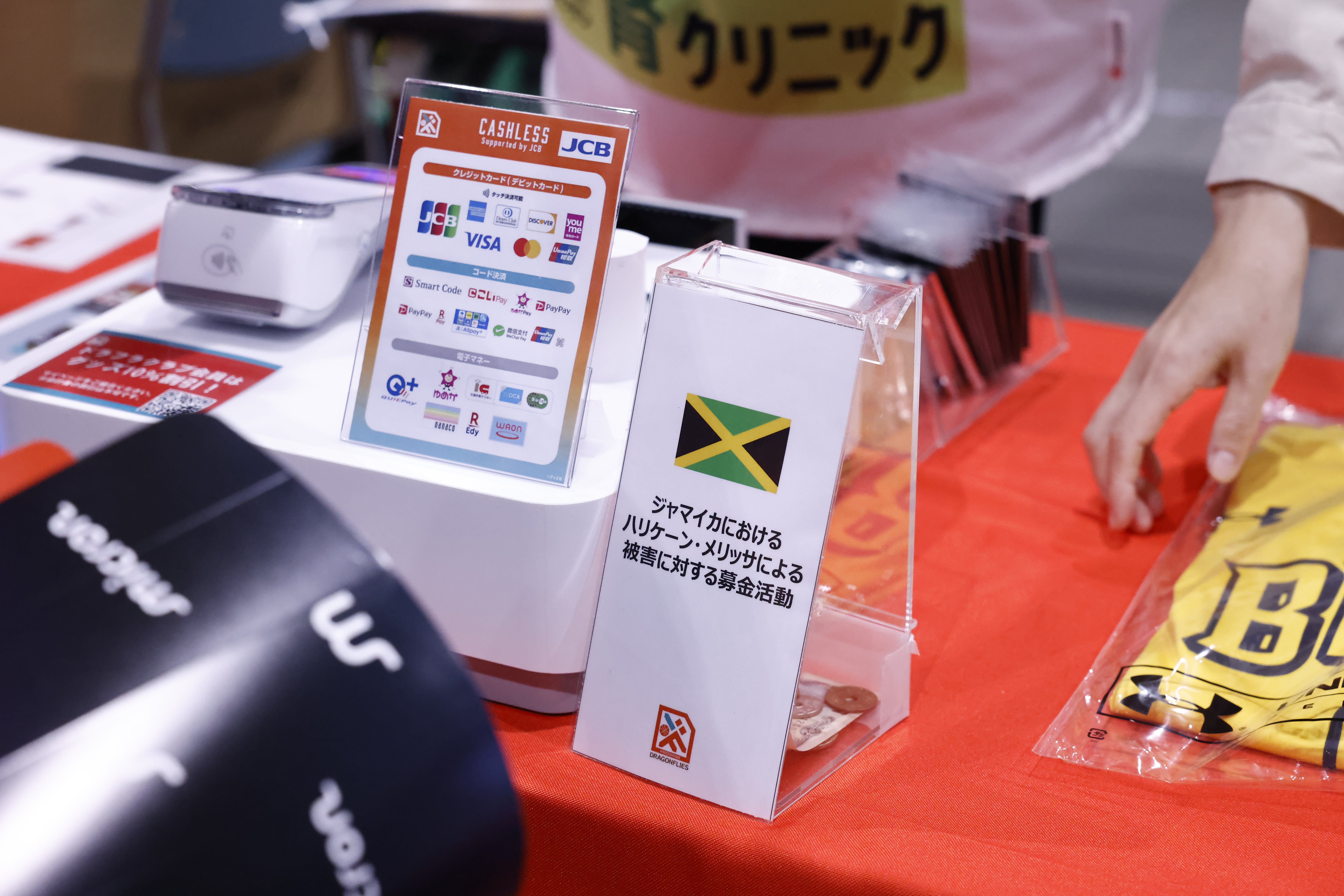 今節では、コーバーン選手の母国である被災地の一早い復興を祈念し、募金活動を実施しました。ご来場の皆さまにご協力いただき、GAME1では67,349円の募金が集まりました。