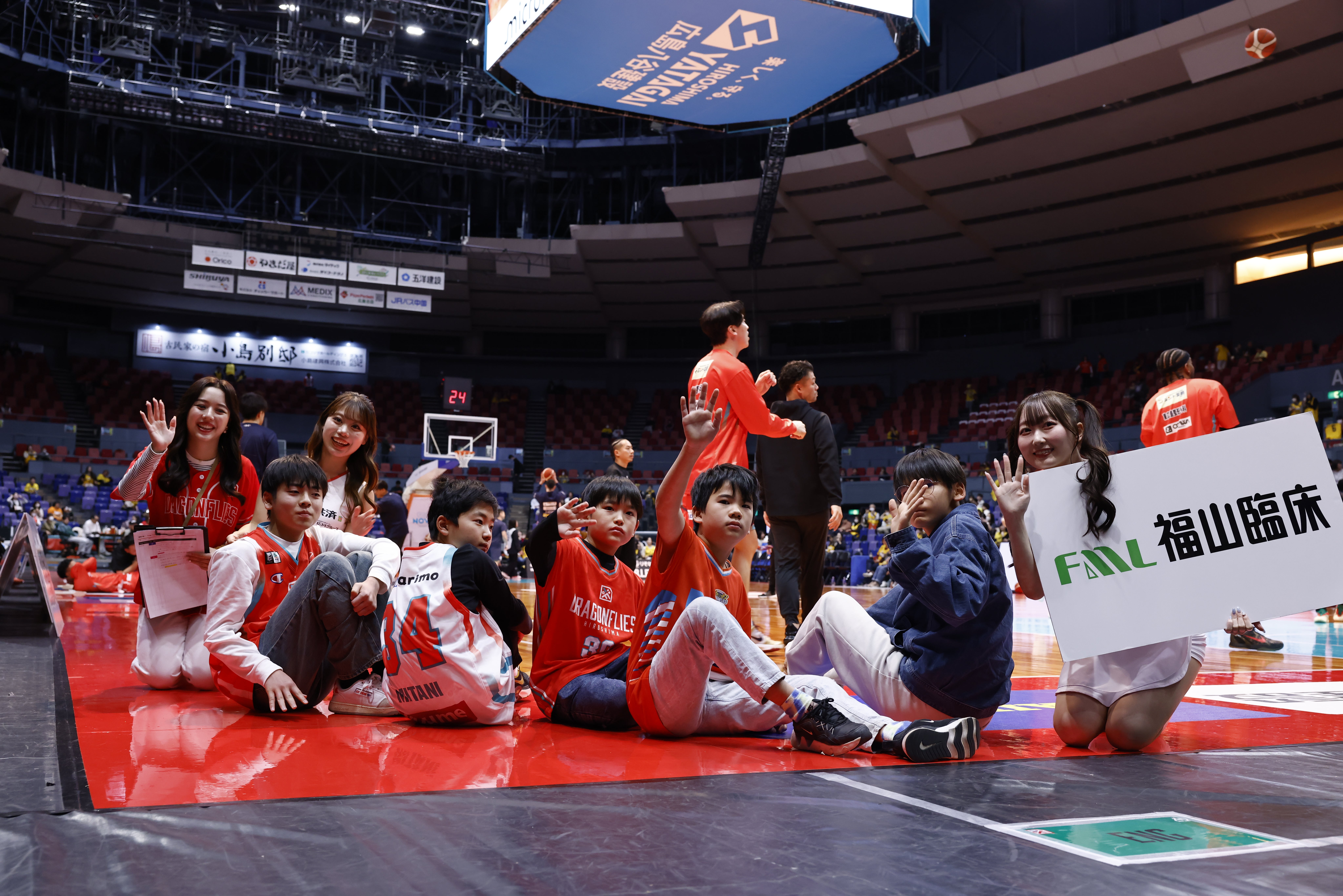 事前抽選に当選された5名の子どもたちが、Dream Practice Tour presented by 福山臨床検査センター に参加し、試合前の選手の練習を間近で見学しました。