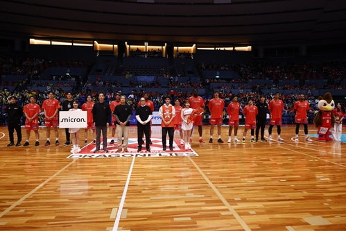 フォトセレモニーでは、マイクロンメモリ ジャパン株式会社 Senior Director 新原隆司 様、Director 古山知嗣 様、Director Barry Ngo 様、KINGS キャプテン 濵上修 様にご参加いただきました。