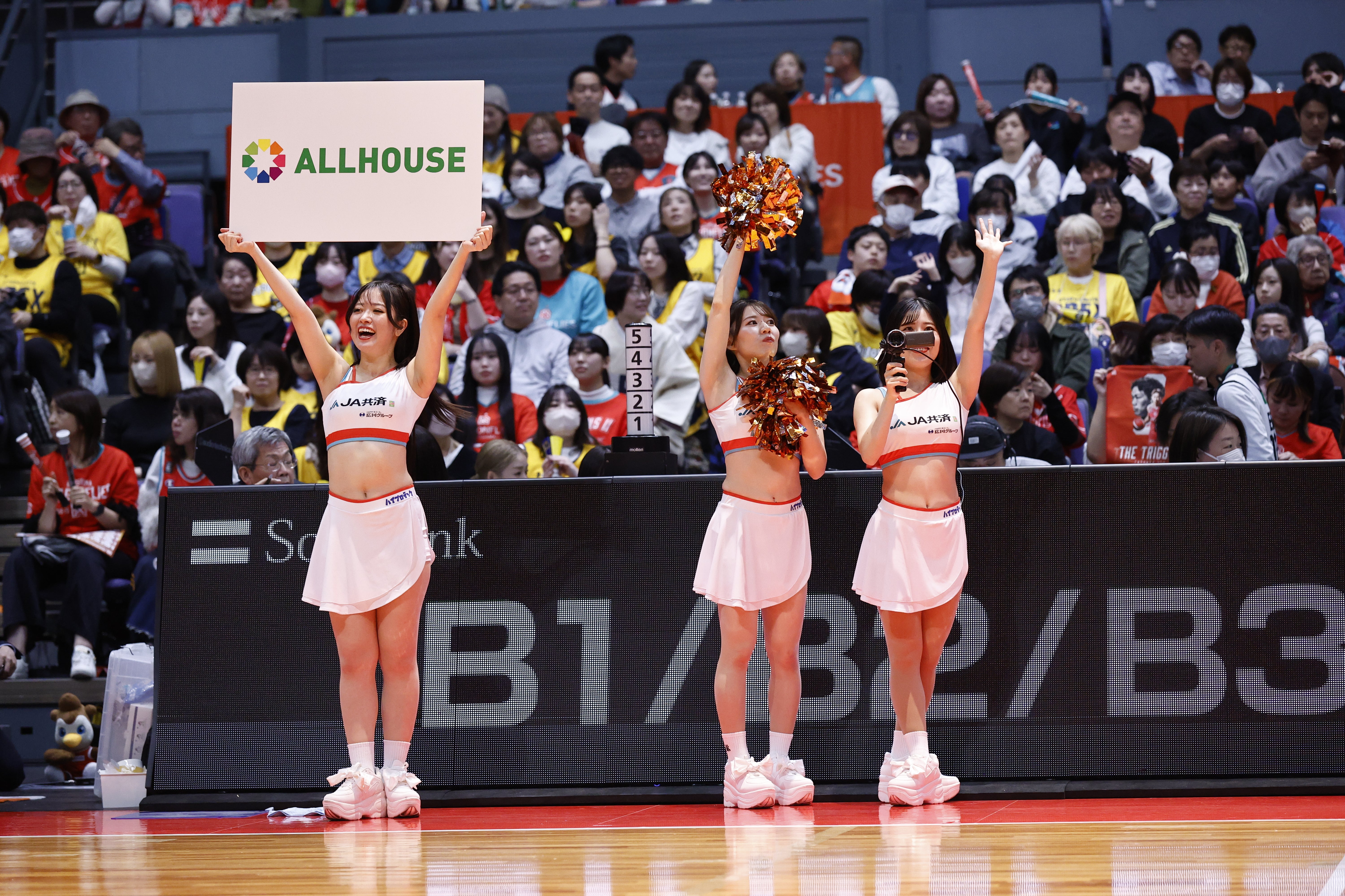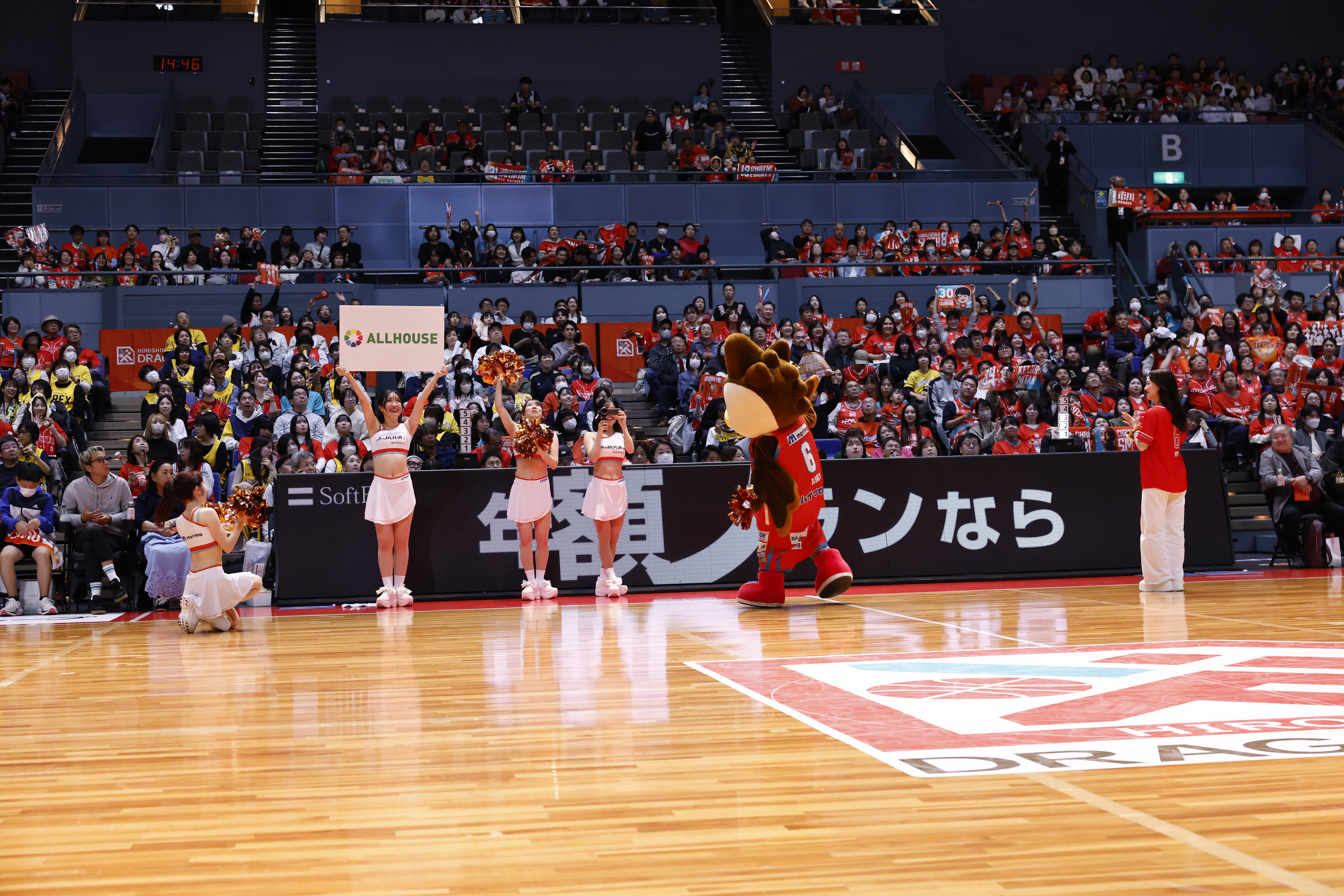 第2Qオフィシャルタイムアウトの、「未来のくらし 楽しく シンプルに」オールハウス presents カメラルーレットでは、D*Flareのカメラにアピールし、最後に4面ビジョンへ映し出された方に選手サイン入りミニバスケットボールがプレゼントされました。
