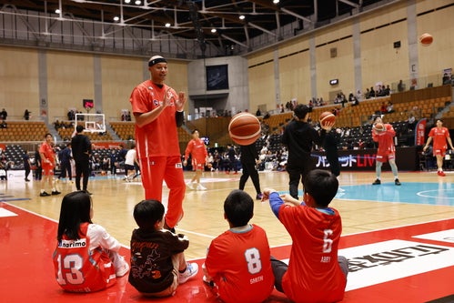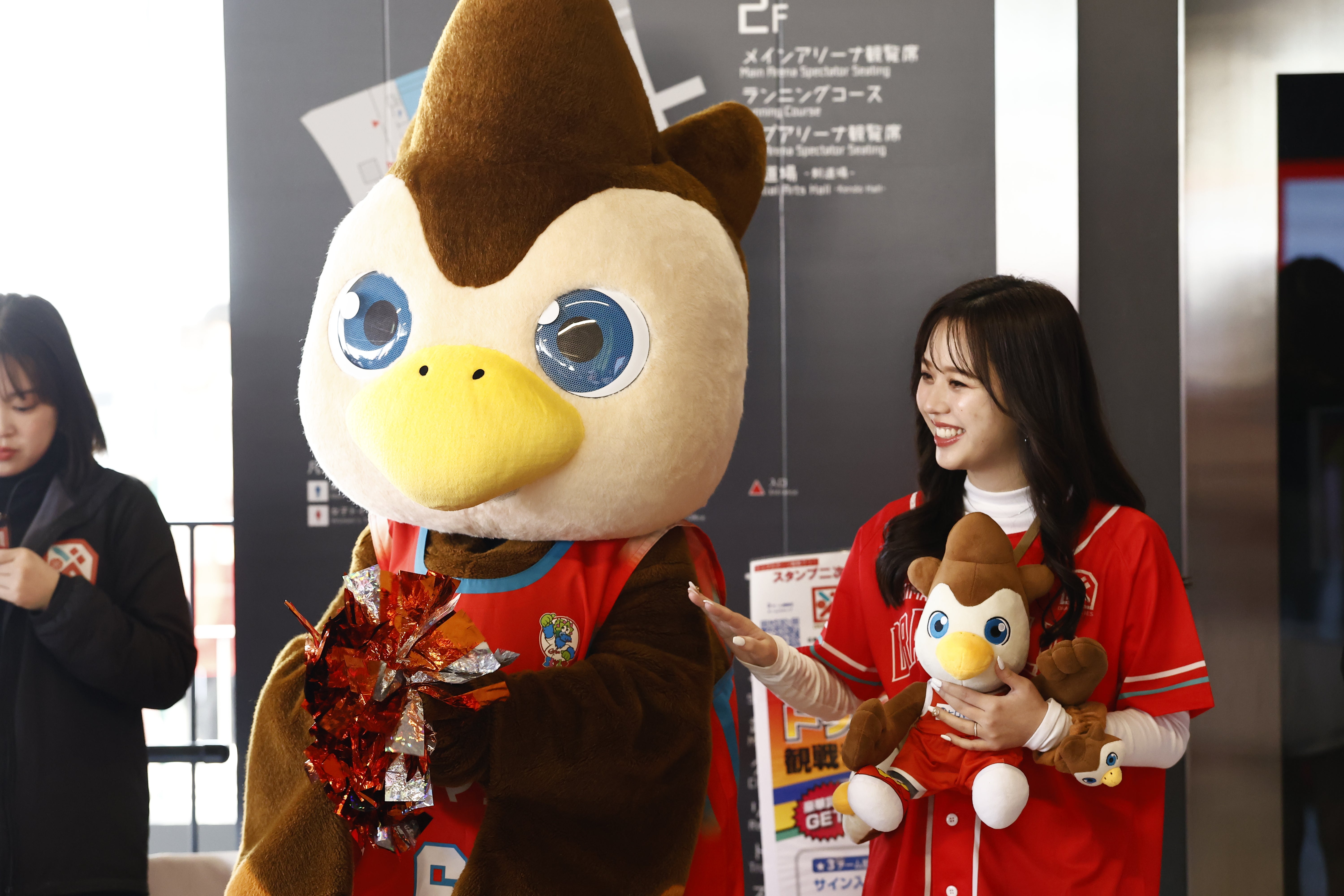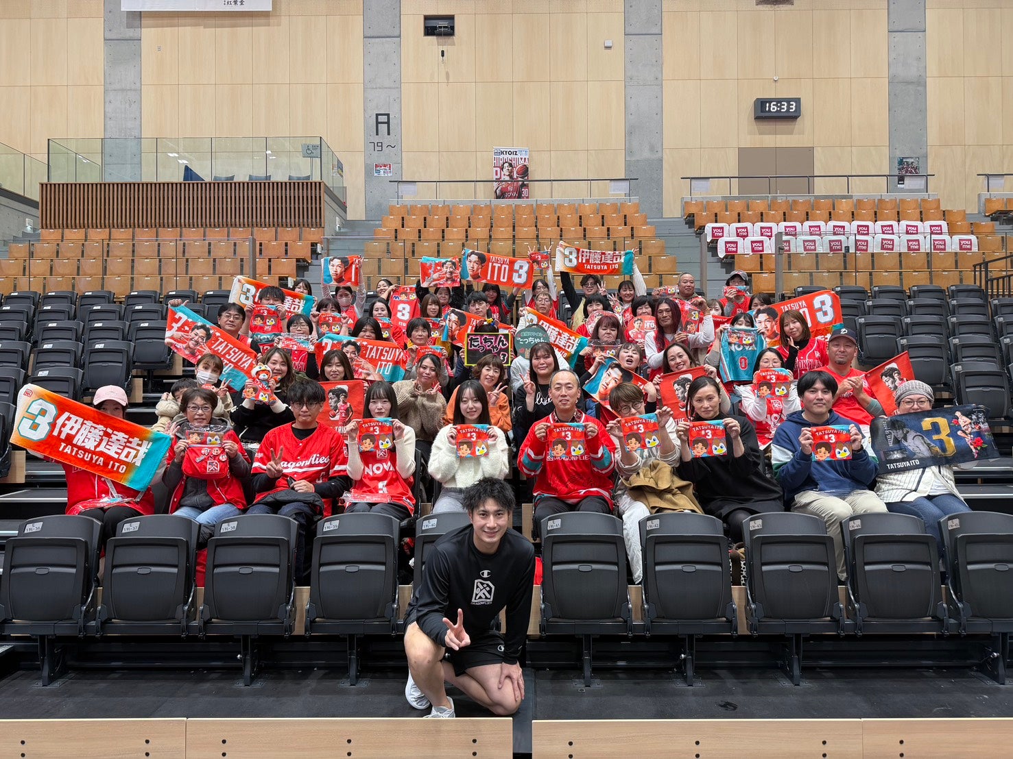 12/6(土)琉球ゴールデンキングス戦では「たっちゃんシート」を販売し、ご購入いただきました方にグッズの手渡しと集合写真撮影を行いました。