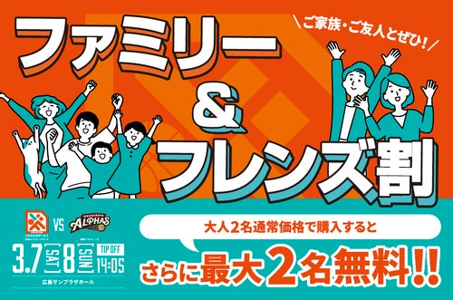 この度、3/7(土)8(日)越谷アルファーズ戦におきまして、「ファミリー&フレンズ割 チケット」を販売いたします!