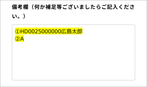 入会アンケートの「備考欄」に以下2点の情報をご入力ください。
