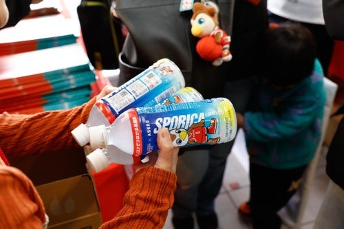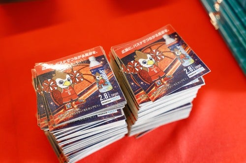 アシードホールディングス株式会社より、ご来場の皆様にアシードホールディングスと広島ドラゴンフライズのコラボドリンク”スポリカ”とコラボステッカーをプレゼントいたしました。