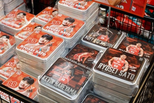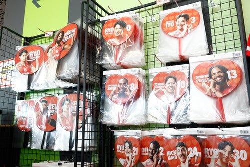 今節では、選手のハートポーズが可愛いチョコクランチ缶や写真映え間違いなしのハートうちわ、キラキラ輝くグリッターコースターなどバレンタイングッズを販売いたしました。