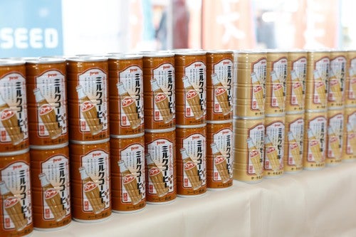 アシードホールディングス株式会社では、広島ドラゴンフライズ コラボスポーツドリンクを1本150円、3本300円で販売いたしました。さらに、SNSのフォローとアンケートにご回答いただいた先着150名様の方には、昔懐かしの味・ミルクセーキ缶とミルクコーヒー缶の2本をプレゼントいたしました。