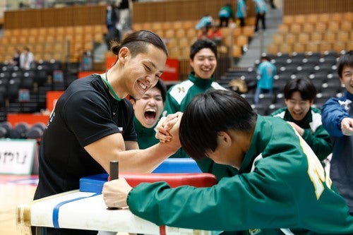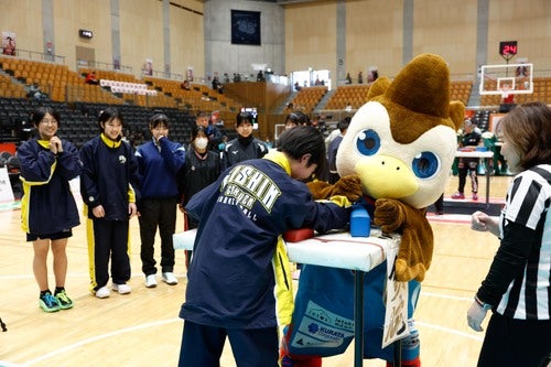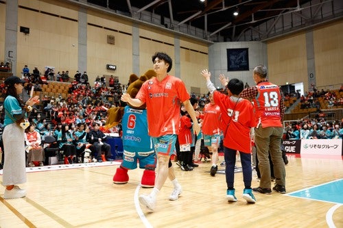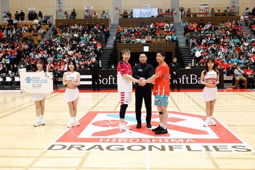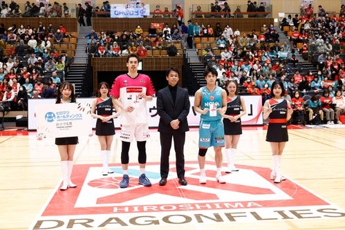 試合開始前には、両チームのキャプテンによるおりづる交換が行われました。試合を通して最もリスペクトに値する選手を表彰する「ヒロマツホールディングス presents おりづる賞」は、広島ドラゴンフライズ 寺嶋良 選手、秋田ノーザンハピネッツ 土屋アリスター時生 選手が受賞しました。