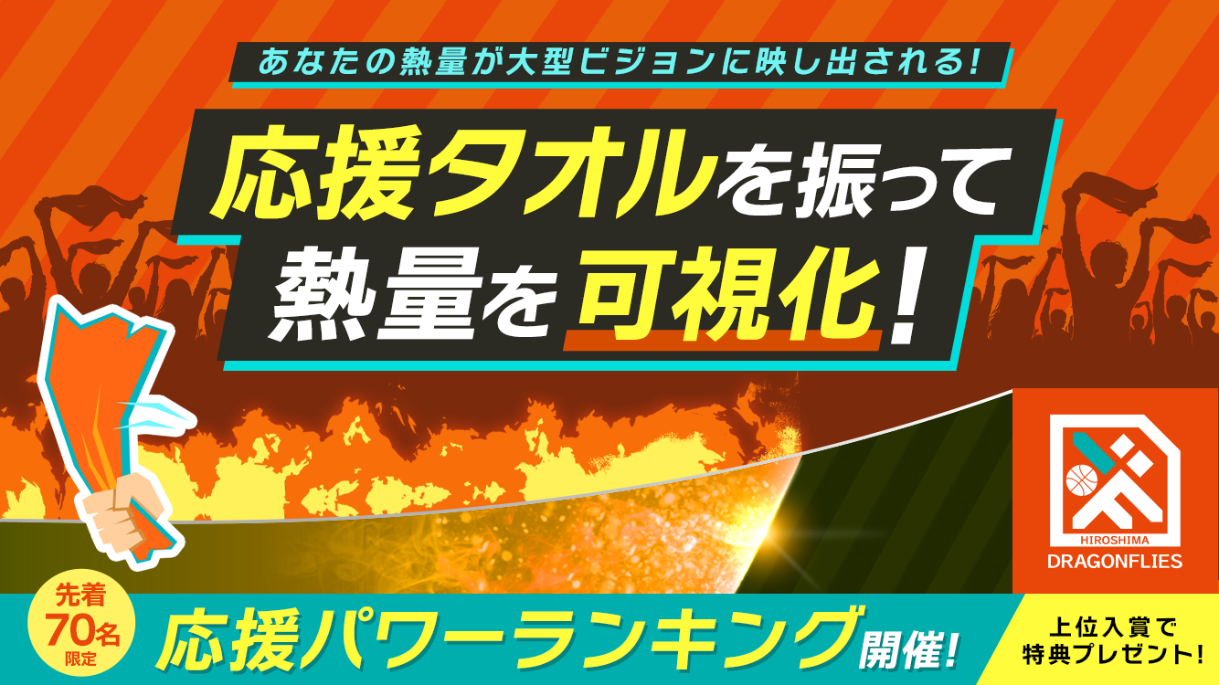 ご参加いただく方の中より、応援量が多かった上位3名様に広島ドラゴンフライズ公式グッズをプレゼントいたします。