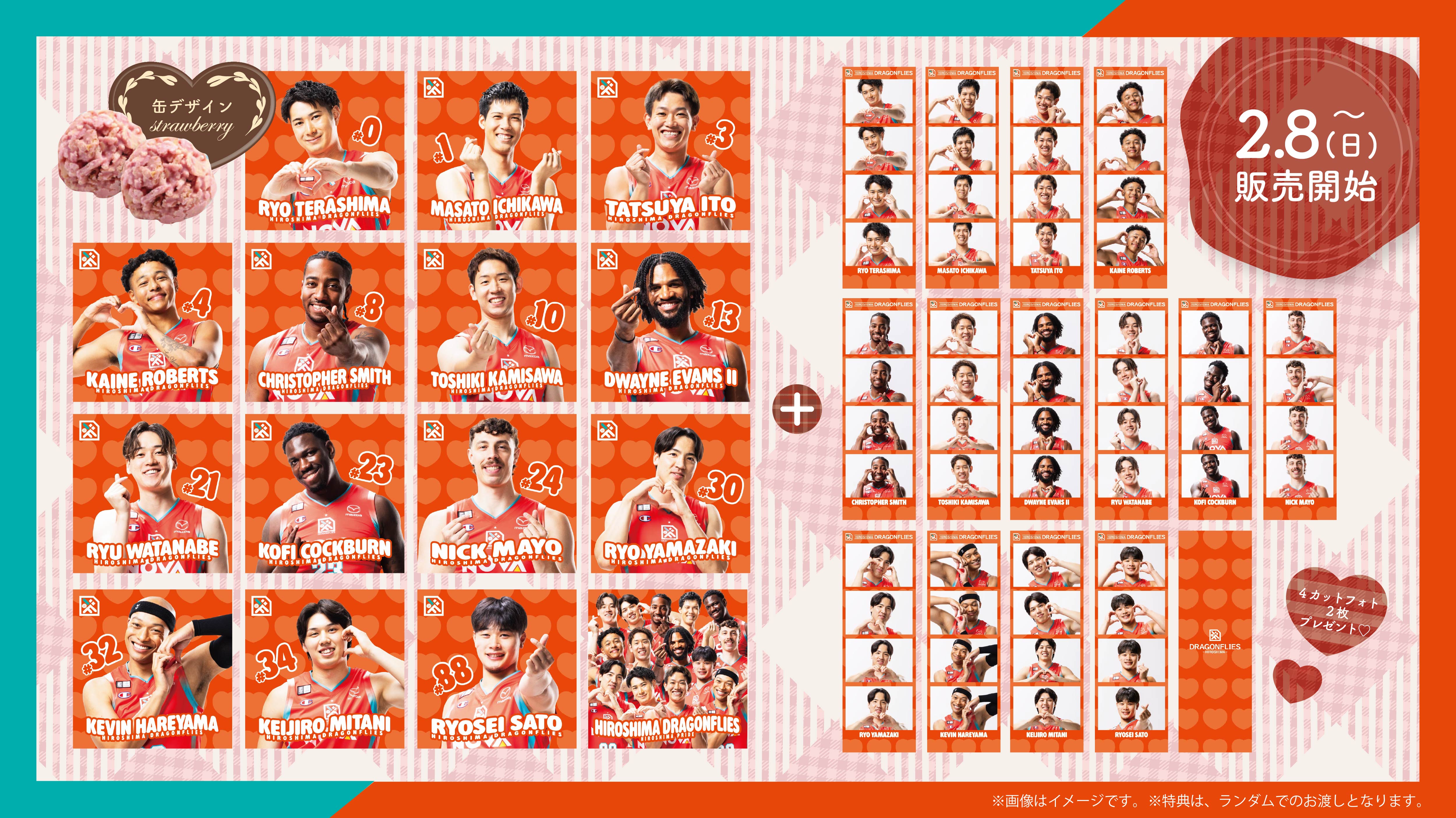 ❤1缶につき、選手ハートポーズ4カットフォト2枚をランダムでプレゼント!