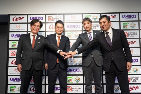 このたび、広島交響楽団、株式会社広島東洋カープ、株式会社サンフレッチェ広島で構成されておりました『広島3大プロ(P3 HIROSHIMA)』に、新たに株式会社広島ドラゴンフライズが参画し、『広島4大プロ(P4 HIROSHIMA)』を発足しましたことをお知らせいたします。『広島4大プロ(P4 HIROSHIMA)』発足に際し、本日2月24日(火)、各団体の代表者が出席し記者会見を実施いたしました。