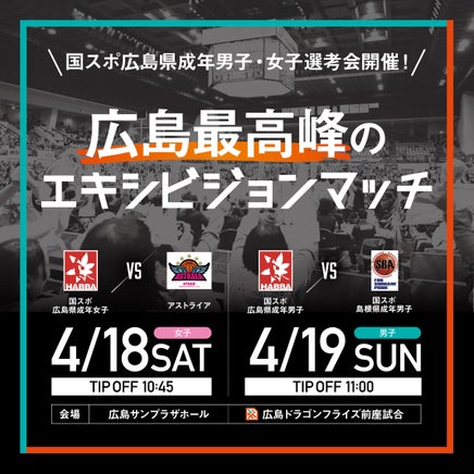 この度4/18(土)、4/19(日)の島根スサノオマジック戦の前座試合にて「国スポ選考を兼ねたエキシビジョンマッチ」の開催が決定いたしました!