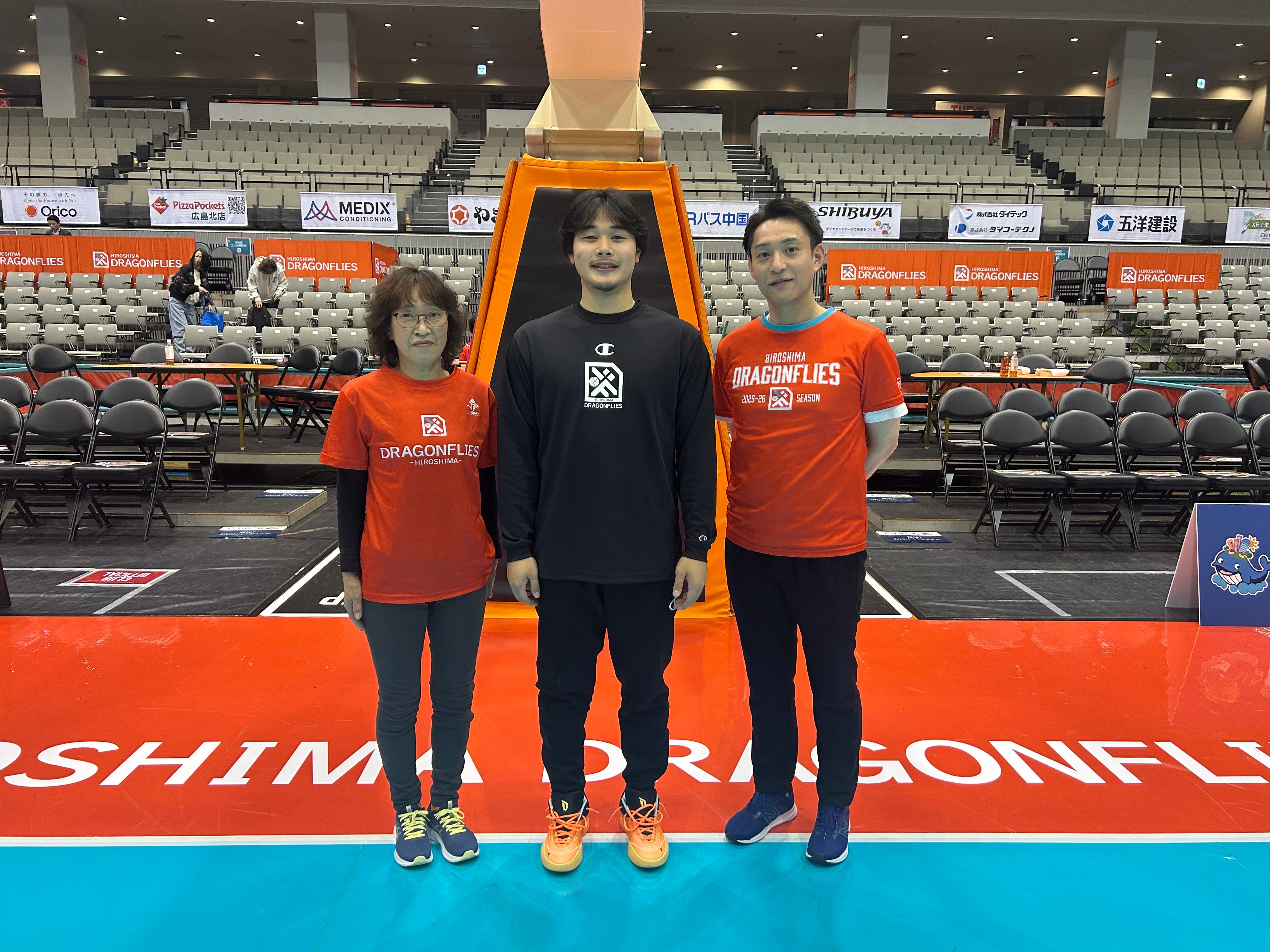 試合終了後、ゆめカード会員・ゆめアプリ会員限定企画にご当選された皆さまと佐藤涼成 選手が記念撮影を行いました。