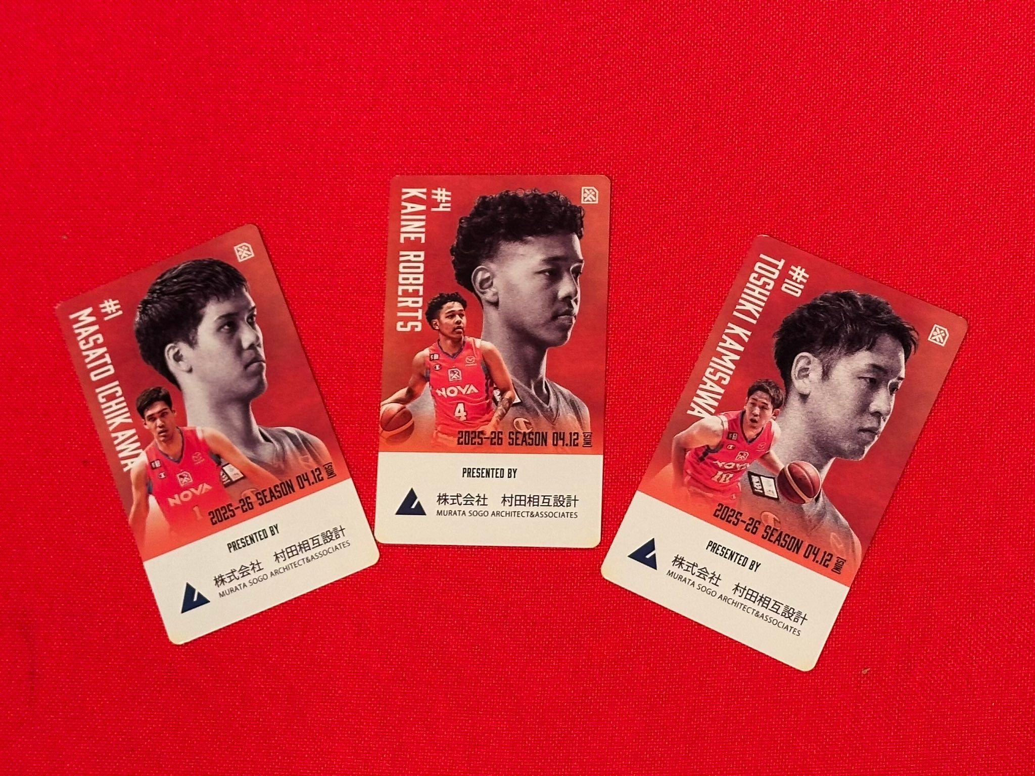 本日は、株式会社村田相互設計 様のご協力により、市川真人 選手、ロバーツ ケイン 選手、上澤俊喜 選手の3選手がデザインされたトレーディングカードをランダムでお配りいたしました。
