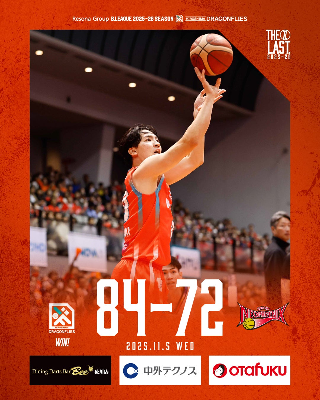 後半に入ると、広島はトランジションやセカンドチャンスの得点を三遠に許さず、守り合いの展開で、リードを広げていく。追いつきたい三遠は変則的なディフェンスで広島を崩し、点差を1桁に縮めていくが、広島が落ち着いたゲーム展開でリードを守りきり勝利となった。