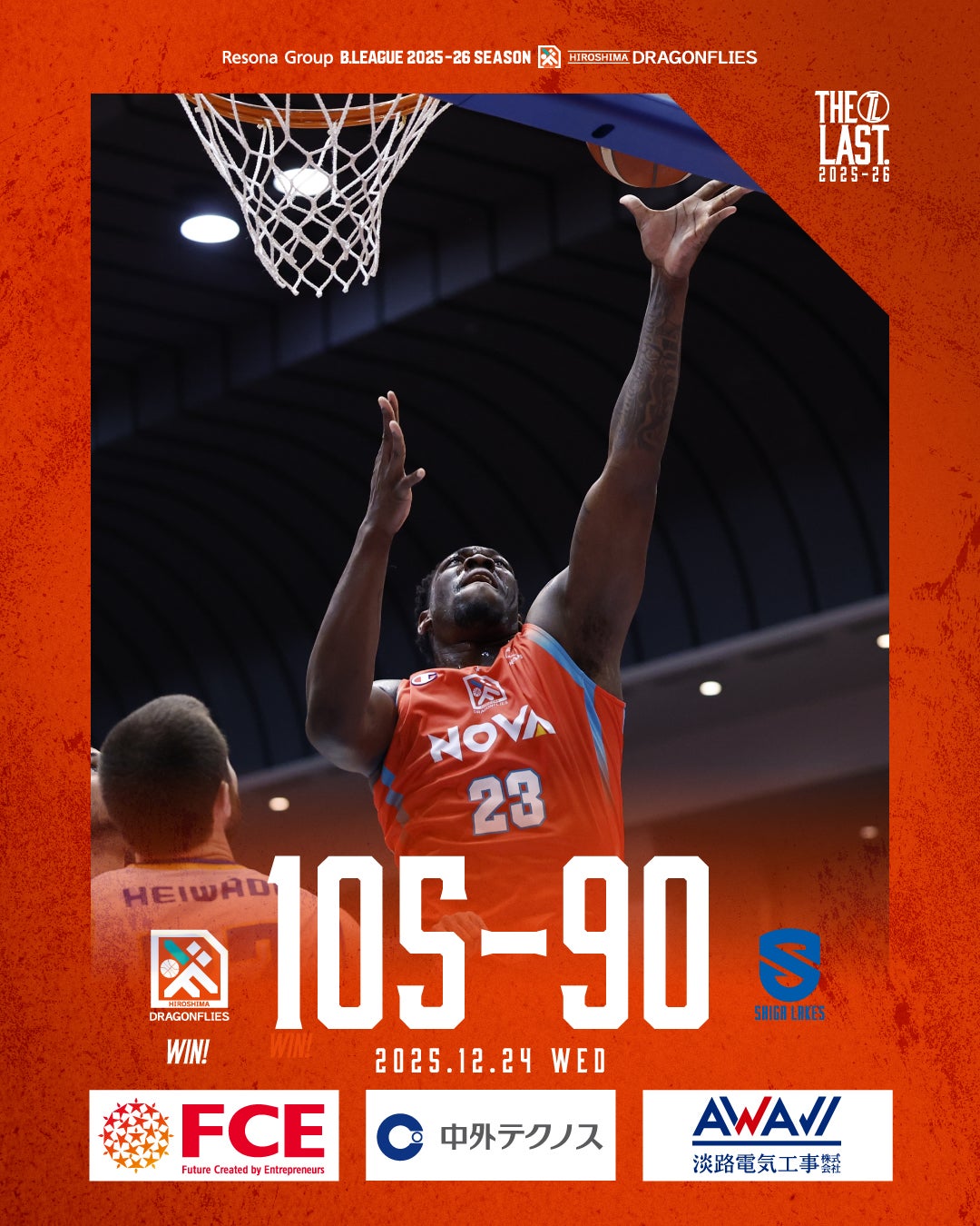 【試合結果】12/24(水) りそなグループ B.LEAGUE 2025-26シーズン 第16節 滋賀レイクス 戦