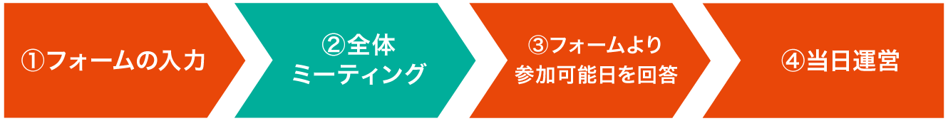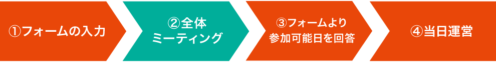 参加前に数名のスタッフと顔を合わせ、士気を高めましょう!
